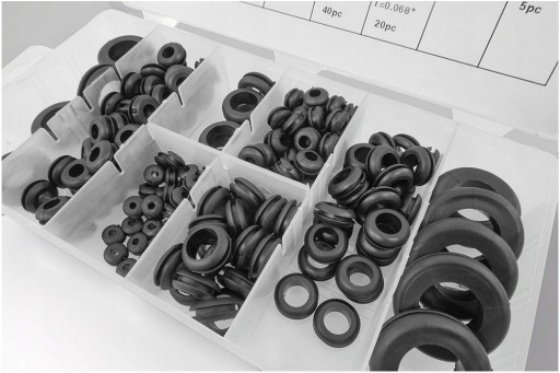 Zestaw 180szt. przelotek gumowych do otworów jest niezbędnym sprzętem dla każdego warsztatu czy garażu.