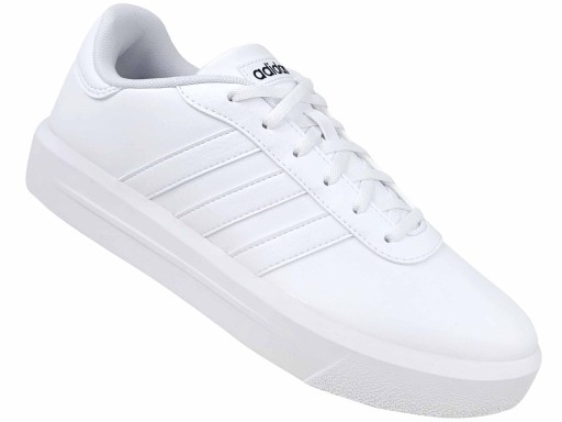 Oldschool'owy model ADIDAS COURT PLATFORM to komfortowe buty w tenisowym stylu z lat 70 z kontrastowymi 3 paskami. Wybierz kultowy model adidas i stwórz swój własny look. Model inspirowany ponadczasowym lookiem ma klasyczną sylwetkę połączoną z wyszukanymi akcentami. Wypukła podeszwa środkowa i kolorowe akcenty nadają całości estetykę. Zestaw je z dżinsami lub noś na co dzień w szortach — pasują do każdego stylu.