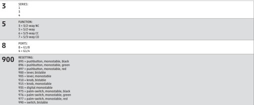 Seria 1 jest wyposażona w dwa rodzaje urządzeń: przycisk (3/2-drogowy) oraz dźwignię (3/2 i 5/2-drogowy).