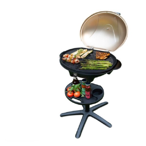 - ? WIELOFUNKCYJNY GRILL 2 W 1 : Szybki demontaż nóżki pozwala ustawić ten złoto-czarny BBQ-9479 również na stole. Dzięki kompaktowej, okrągłej budowie łatwo jest go przenieść i umieścić na bufecie grillowym.