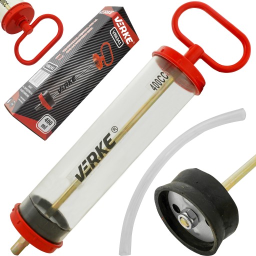 Ręczna odsysarka do oleju o pojemności 400 ml. Służy do wstrzykiwania bądź odsysania oleju z ciężko dostępnych miejsc tj. skrzynia biegów, mostów napędowych itp.