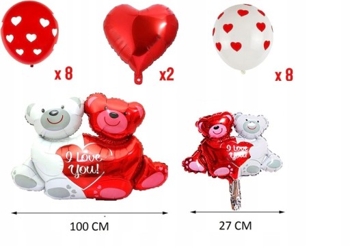 - czerwone balony z serduszkami - 8 szt.