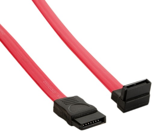 Kabel SATA III zapewniający szybki transfer danych do 600 MB/s, posiada wtyczkę kątową oraz metalowe zatrzaski. Długość 0.5 m, kolor czerwony.