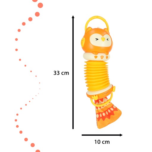 Ciekawy design i szeleszczący ogon zachęcą do zabawy, która wpłynie na poprawienie precyzji dłoni maluszka, a także rozwinie jego słuch i precyzję!