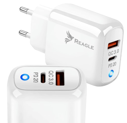 Reagle RCHAR31 to ładowarka sieciowa z USB-C PD 20W oraz USB-A QC 3.0.