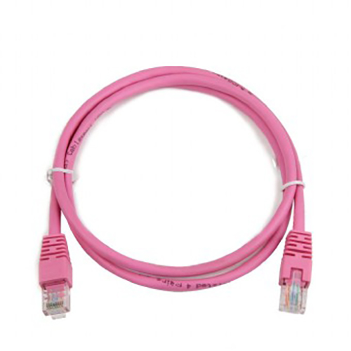 Kabel sieciowy kategorii 5e o długości 2 metrów, zakończony po obu stronach wtykiem RJ-45 w kolorze różowym. Posiada zalewaną osłonkę oraz pozłacane styki.
