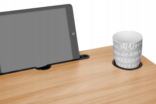 - Specjalne zagłębienia w blacie, idealne do umieszczenia tabletu, książki czy kubka