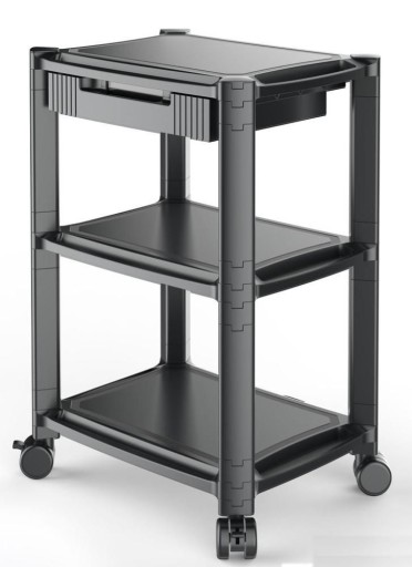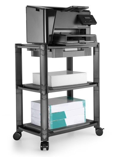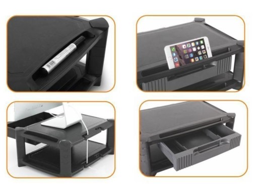- Cechy: Organizery kablowe na tylnej krawędzi półek umożliwia schludne ułożenie przewodów, Modułowy system składania nóżek zapewnia regulację wysokości poszczególnych półek