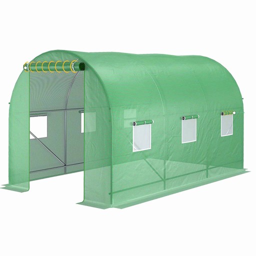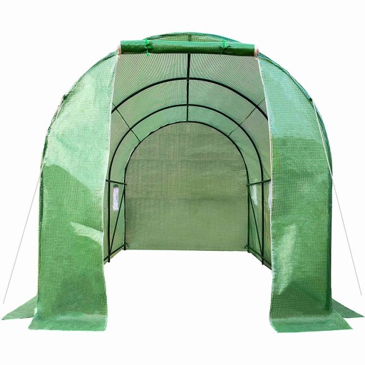 ZIELONA FOLIA PE z FILTREM UV: Ten zestaw do szklarni ogrodowej zawiera całkowicie zamkniętą osłonę PE chroniącą przed wodą i promieniowaniem UV, która utrzymuje wysoki poziom wilgotności dla rosnących roślin, jednocześnie umożliwiając przepuszczanie odżywczego światła słonecznego przez szklarnię. Wydłużone krawędzie folii są przeznaczone do zakopania głęboko w glebie, aby zapewniając większą stabilność i naprężenie foii pozwalające na spływanie wody deszczowej. Folia jest dodatkowo wzmocniona grubą siatką PP