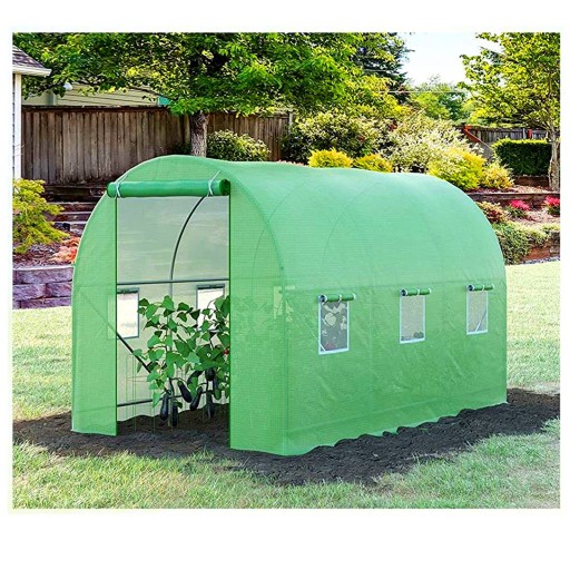 ZIELONA FOLIA PE z FILTREM UV: Ten zestaw do szklarni ogrodowej zawiera całkowicie zamkniętą osłonę PE chroniącą przed wodą i promieniowaniem UV, która utrzymuje wysoki poziom wilgotności dla rosnących roślin, jednocześnie umożliwiając przepuszczanie odżywczego światła słonecznego przez szklarnię. Wydłużone krawędzie folii są przeznaczone do zakopania głęboko w glebie, aby zapewniając większą stabilność i naprężenie foii pozwalające na spływanie wody deszczowej. Folia jest dodatkowo wzmocniona grubą siatką PP