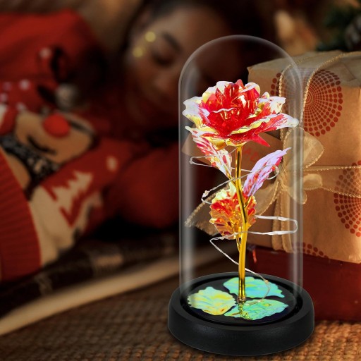 WIECZNA RÓŻA W SZKLE Lampka Nocna Sztuczne Kwiaty PREZENT DLA MAMY KOBIETY