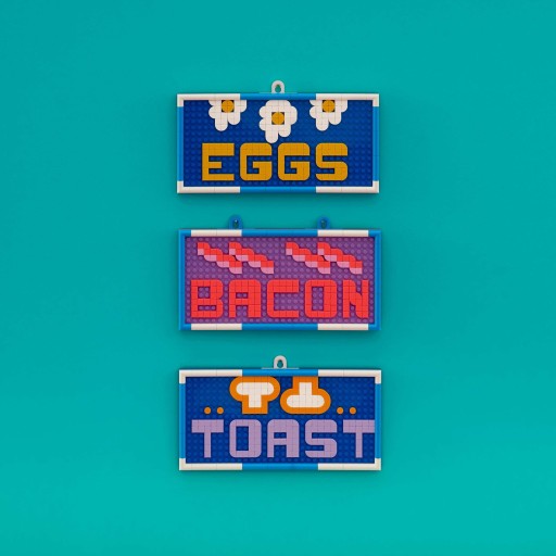 - Kreatywność czeka — zestaw inspiruje do wyrażania siebie przez zabawę dwiema dużymi płytkami 16x16, wieszakami i ponad 500 płytkami w różnych kolorach i kształtach, z których można układać dowolne napisy