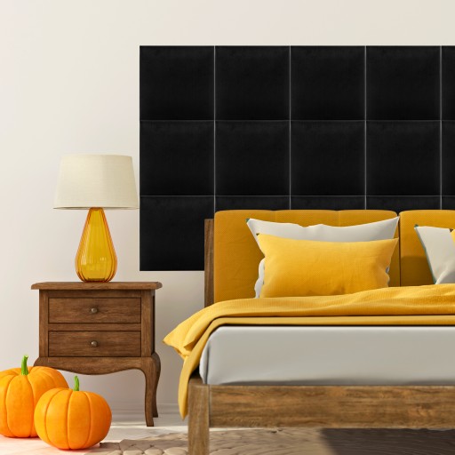 Panele Ścienne Tapicerowane 40x40 KWADRATOWE CZARNY Welur Miękki Gruby
