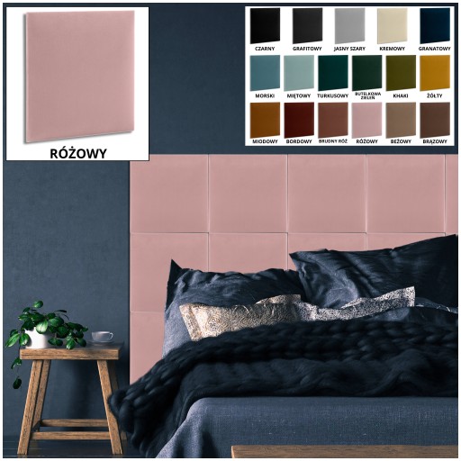 Panele Ścienne Tapicerowane 40x40 KWADRAT RÓŻOWY Welur Miękki
