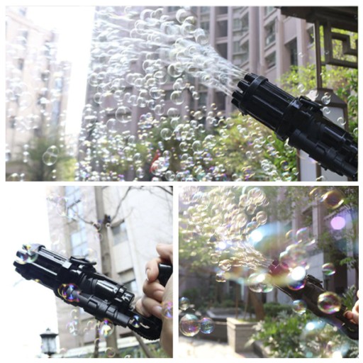- zabawka bardzo prosta w użyciu wystarczy włożyć baterię, zanurzyć koniec zabawki w cieczy do baniem mydlanych i nacisnąć spust ciesząc się setkami baniek mydlanych