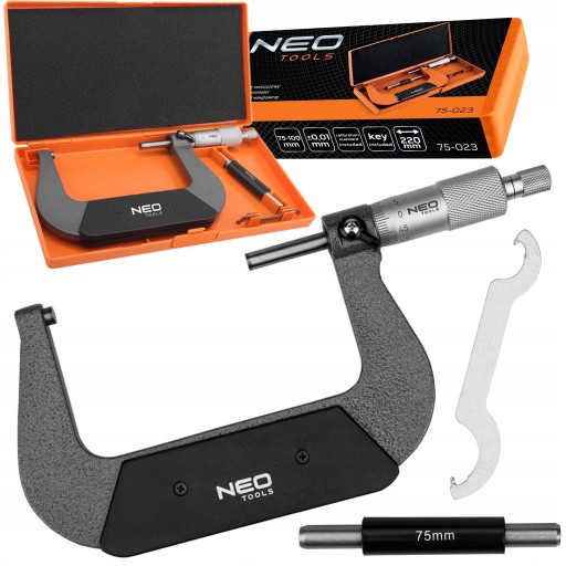 NEO MIKROMETR NONIUSZOWY ANALOGOWY 75-100 mm / 0,01mm MIKROMIERZ ZEWNĘTRZNY Waga produktu z opakowaniem jednostkowym 0.55 kg