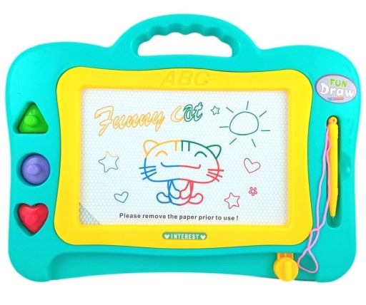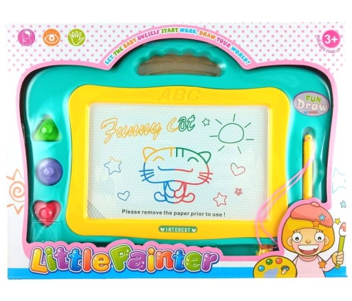 Tablica posiada wygodny uchwyt, dzięki czemu dziecko może ją zabrać gdzie tylko chce.