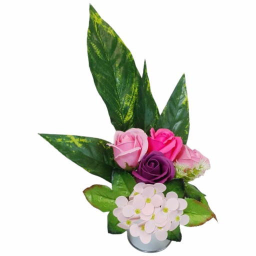 ❤️ Ozdobny bukiet ułożony w metalowej osłonce z kwiatami mydlanymi - piękny prezent oraz delikatnie pachnąca dekoracja dla twojego wnętrza ❤️