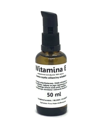Witamina E w kosmetykach hamuje procesy starzenia się skóry, związane z niszczącym działaniem aktywnych form tlenu (wolne rodniki).