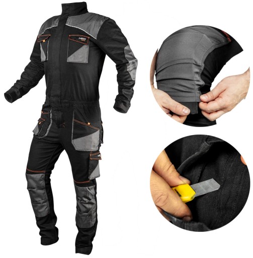 Kombinezon roboczy z serii HD Slim marki NEO TOOLS to odzież robocza dopracowana w każdym detalu. Wytrzymałość dzięki wykorzystaniu w produkcji tkaniny Oxford, z której wykonano wzmocnienia w miejscach narażonych na przetarcie oraz potrójnym przeszyciom na szwach. Tkanina Oxford to nowoczesny poliestrowy materiał wzmocniony poliuretanem, charakteryzujący się dużą odpornością na czynniki atmosferyczne, uszkodzenia mechaniczne oraz uporczywe zabrudzenia, np. smarami. Swoją trwałość zawdzięcza wykorzystaniu w splocie wiązki dwóch lub trzech nici. Kombinezon roboczy HD Slim to również wygoda. Elastyczność i dopasowanie do sylwetki zawdzięcza trzem procentom elastanu w składzie materiału oraz elastycznemu pasowi. Swobodę ruchów zwiększają profilowane łokcie i kolana – te ostatnie z kieszeniami na nakolanniki. Nowatorski pomysł pozwalający użytkownikowi w prosty sposób wydłużyć nogawkę zadowoli nawet wyższych beneficjentów zalet, jakimi obdarza kombinezon roboczy HD Slim. Pojemne kieszenie w różnych kształtach, by mogły zmieścić niezbędne podczas pracy przedmioty. Szybką identyfikację właściciela kombinezonu roboczego HD Slim umożliwia wewnętrzna wszywka imienna. Technologowie odzieży NEO TOOLS nie pominęli również aspektów wizualnych oraz kwestii bezpieczeństwa. Zaprojektowali unikalny krój Slim dopasowany do ciała i schowali suwaki za nienarzucającą się plisą. Spokojną pracę niezależnie od warunków pogodowych i zmroku za oknem zapewniają strefy odblaskowe.