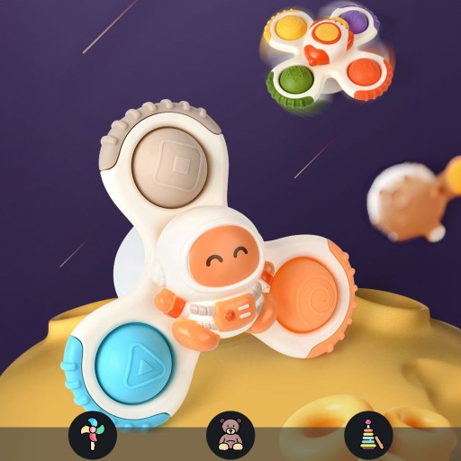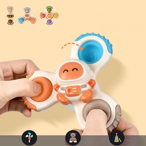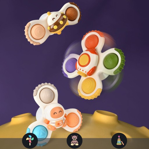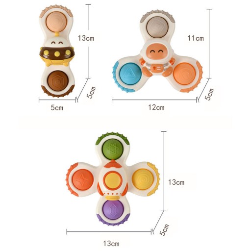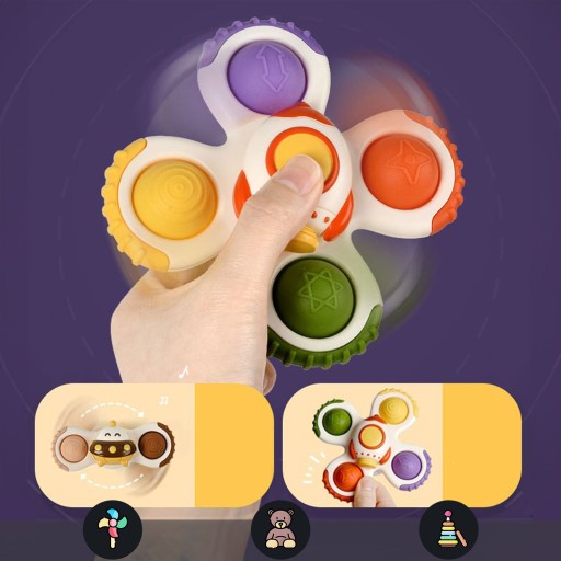 Spinery można przyczepić zarówno do szybu w czasie podróży oraz do wanny w czasie kąpieli (zabawkę można moczyć). Łożyska spinerów gwarantują długotrwały obrót. Zabawki posiadają gumowe elementy do przyciskania co rozwinie zmysły dziecka oraz działa relaksująco. Zabawa ćwiczy zwinność roczek u dziecka oraz poprawia koordynację ręka-oko.