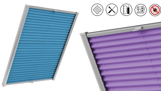 Stylowa roleta plisowana na okno dachowe "NEW COSSI SL". Plisy, plisa dachowa na wymiar - kolekcja tkanin "STANDARD", na którą składają się liczne tkaniny gładkie, wzorzyste i wiele innych.