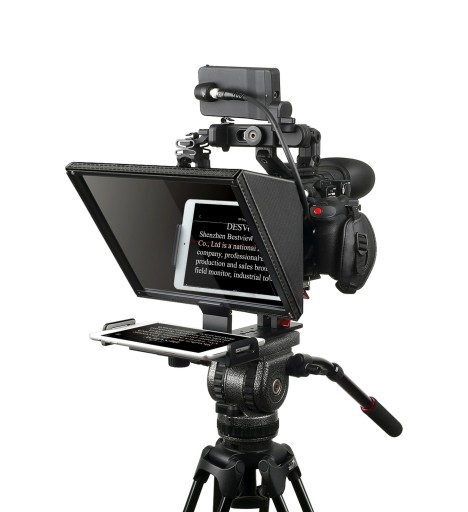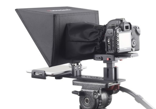 Teleprompter Desview T12 to urządzenie, które pozwoli Ci zaoszczędzić setki godzin spędzanych na niekończącym się powtarzaniu ujęć do vlogów, webminarów lub innych filmów wymagających lektora. Oferuje on profesjonalny uchwyt, który wygodnie zainstalujesz na statywie, a następnie połączysz z tabletem lub smartfonem o maksymalnej przekątnej wynoszącej 11”. Czytany tekst odbije się na wysokiej jakości lustrze wykonanym z 26-warstwowego szkła rozdzielającego wiązkę światła. Komfort pracy podniesie dołączony do zestawu pilot Bluetooth oraz darmowa aplikacja (iOS/Android), które pozwolą sterować wyświetlanym scenariuszem.