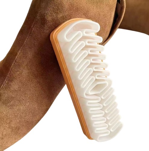 Zamiast włosia posiada pasek miękkiej gumy ukształtowanej w formę przypominającą marszczoną bibułę, pomaga to w łatwy sposób wyczyścić obuwie.