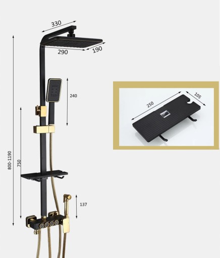 Черный и золотой смеситель для душа MIDO THERMOSTAT LCD Set