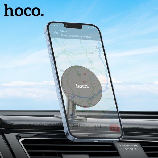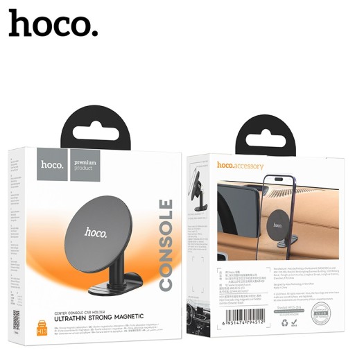 hoco. H13 Fine jade to samochodowy uchwyt magnetyczny do telefonu / na telefon, z przeznaczeniem do montażu na desce / kokpicie / konsoli centralnej / do deski / kokpitu / pojazdu / samochodu za pomocą tasmy dwustronnej, wyposażony w pionowe ramię montażowe z oraz regulowaną głowicę, dające nieograniczone możliwości regulacji i dostosowania do własnych potrzeb kierowcy oraz przegub kulowy, przeznaczony do telefonów komórkowych / smartfonów lub tabletów o wadze nie większej niż 0,5 kg i wielkości wyświetlacza od 4.7 do 7 cali.