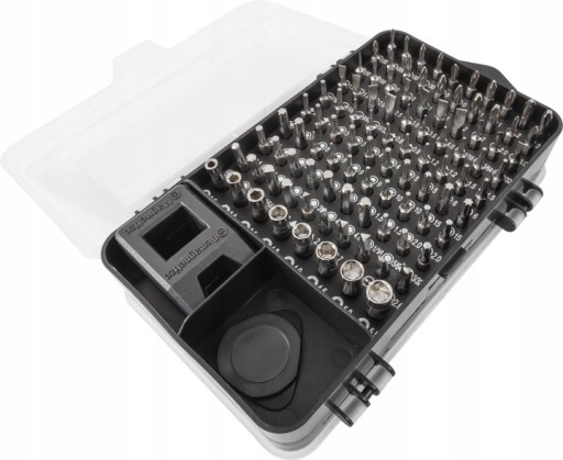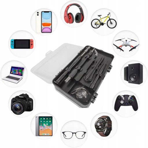 - Zestaw 110 precyzyjnych narzędzi, bitów i otwieraków to niezastąpione narzędzie dla precyzyjnych napraw serwisowych telefonów komórkowych, smartfonów oraz innej elektroniki konsumenckiej. Wyposażony w lekki aluminiowy uchwyt, ten zestaw zapewnia wszystkie niezbędne narzędzia do skutecznej naprawy i konserwacji drobnych urządzeń elektronicznych.