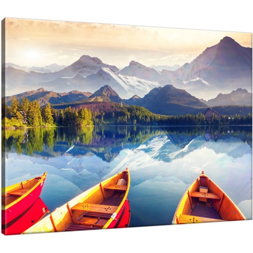 Горы Озеро Лодки 40х30 Пейзаж Картина для гостиной