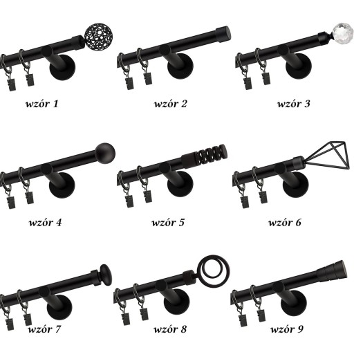 ОДИНАРНЫЙ МЕТАЛЛИЧЕСКИЙ КАРДИН 19ММ МАТОВЫЙ ЧЕРНЫЙ МАТОВЫЙ 100см НАБОР МОДЕЛЕЙ