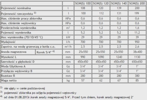 Dostępne pojemności: od 100 do 200 litrów.