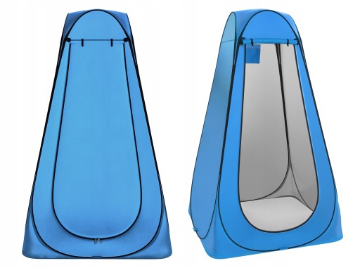 Samorozkładający się namiot plażowy do wykorzystania jako przebieralnia, prysznic lub toaleta turystyczna.
