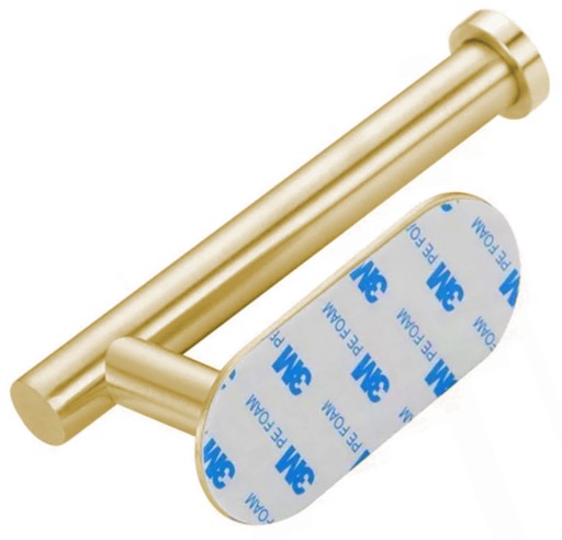 - Samoprzylepny uchwyt na papier toaletowy w kolorze złotym.