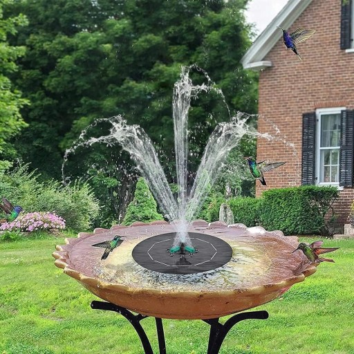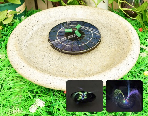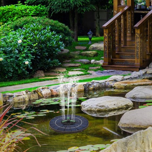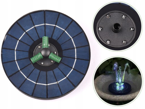 - Ogrodowa fontanna solarna przeznaczona do małych oczek wodnych i innych sztucznych zbiorników wodnych. Pompa wodna pomaga utrzymać równowagę biologiczną w oczku wodnym poprzez odpowiednie napowietrzenie wody, ciągły ruch wody zapobiega jej mętnieniu oraz zarastaniu.