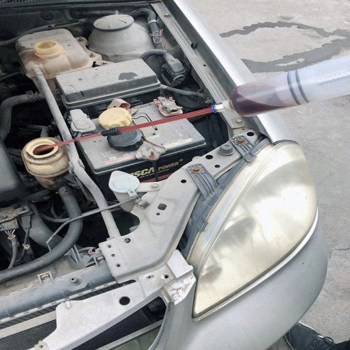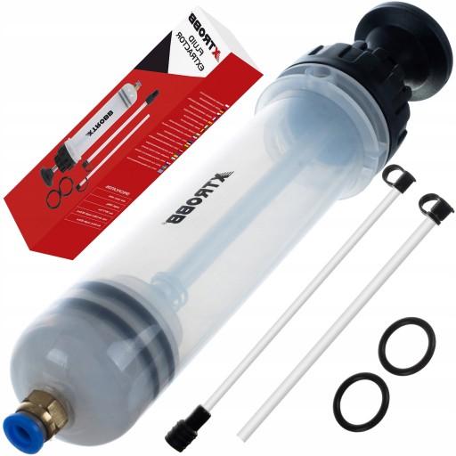 Wysysarka wyposażona jest w 2 specjalne elastyczne wężyki o długościach 215mm i 225mm o średnicy 6mm oraz 4mm, które wprowadzasz w otwór wlewu oleju. W ten sposób dotrzesz praktycznie do każdego zbiornika oraz wydłużasz możliwości robocze strzykawki. Dodatkowo do wężyków dołączone są zatyczki, które zapobiegają przed rozlaniem zawartości.