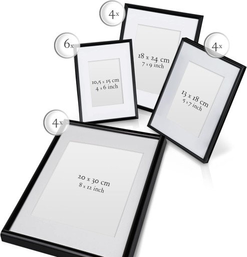 Zestaw ramek na zdjęcia 18 szt. - kolaż ramki na zdjęcia na ścianę galerii 6 x 10,5 x 15 cm / 4 x 13 x 18 x 24 cm / 4 x 20 x 30 cm - ramka na zdjęcia z tworzywa sztucznego i plastikowe szkło - czarny