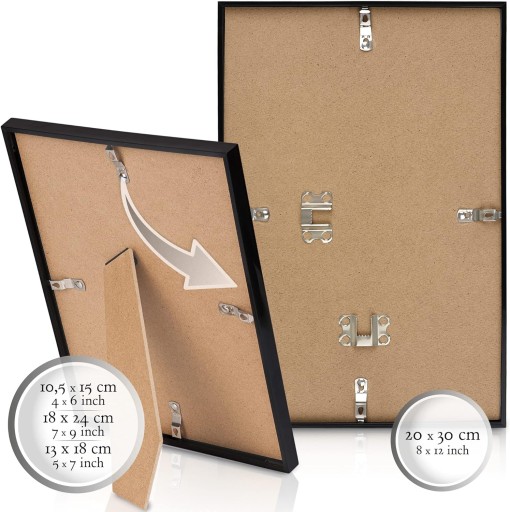- 【 Zestaw do kolażu ściennego】 Ramki do kolażu ściennego mają z tyłu dwa stabilne metalowe wieszaki dla łatwiejszego montażu. W ten sposób możesz zdecydować, czy chcesz powiesić ramkę poprzecznie czy pionowo. Różne rozmiary ramek mają dodatkowy składany stojak (do zdjęć portretowych i krajobrazowych). Dzięki tej funkcji możesz zaprojektować swój indywidualny kolaż ścienny.