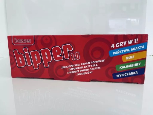 Państwa, miasta - Weźcie ołówki w dłoń! Podajcie państwo, miasto, imię zaczynające się na podaną literę zanim Bipper skończy odliczać czas!Quiz - Sprawdźcie Waszą wiedzę! Bipper zadaje ponad 400 pytań i podaje poprawne odpowiedzi.Kalambury - Podzielcie się na dwie drużyny i użyjcie załączonych do zestawu kart. Waszym celem jest odgadnięcie jak największej ilości słów w jak najkrótszym czasie.Wyliczanka - Gra sprawdzi Waszą wiedzę i szybkość reakcji. Każdy ma zaledwie 8 sekund na podanie jak największej ilości odpowiedzi!Informacje dodatkowe: