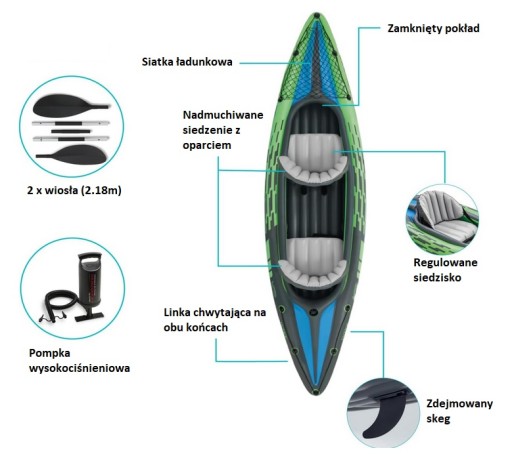 Kajak Challenger K2 dwuosobowy zestaw - 68306 Intex