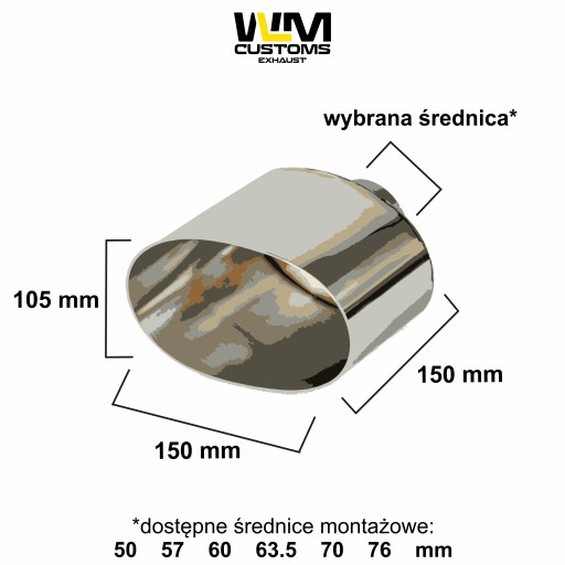 - średnica zewnętrzna - owalna (owal, elipsa) 105 x 150 mm