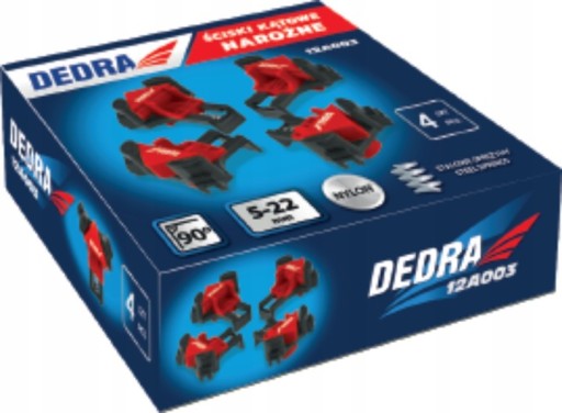 Zestaw czterech sztuk ścisków kątowych, przeznaczonych do kątów wewnętrznych.