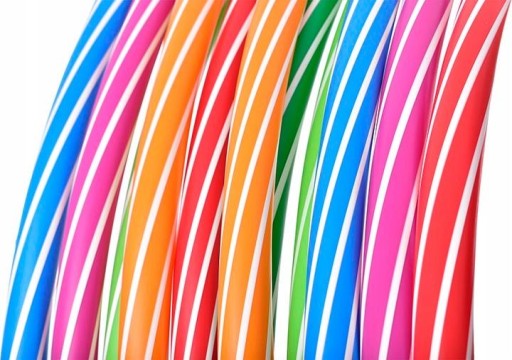 Hula hop to przyrząd pomagający efektywnie zrzucić zbędne kilogramy. Specjalnie zaprojektowany, podczas wykonywania ćwiczeń, wywiera nacisk na mięśnie brzucha, pleców, bioder i pośladków. W zestawie 10 szt.