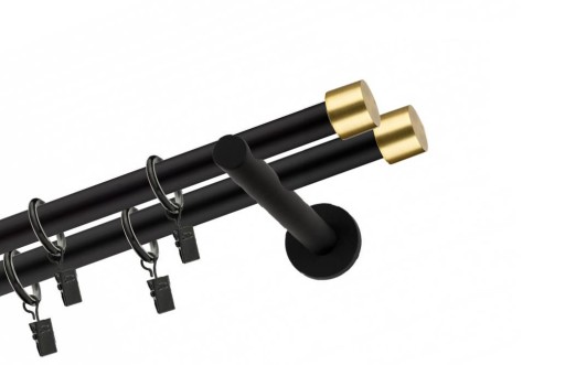 ✔️KOMPLETNY CZARNY KARNISZ PODWÓJNY METALOWY 19+19mm / 280cm✔️
