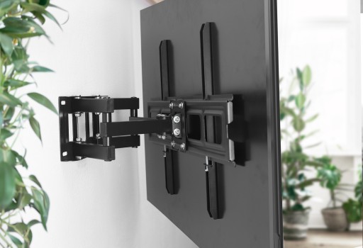✅ Specjalny uchwyt do telewizora z opcją instalacji w narożniku, umożliwiający także montaż bezpośrednio na płaskiej ścianie. Elastyczność ustawienia telewizora w dowolnej pozycji, zarówno blisko, jak i daleko od ściany.