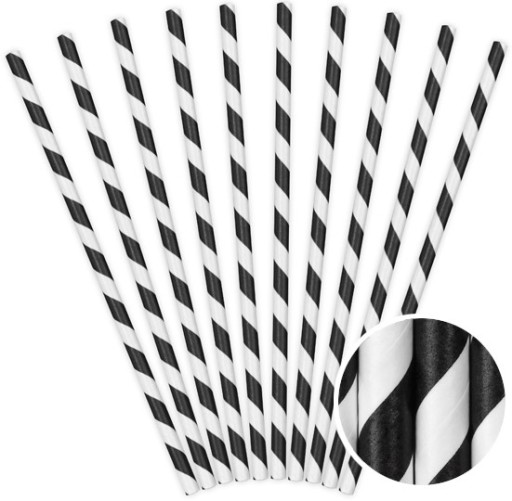 ✔️Słomki papierowe w paski, czarne, 19,5 cm, 10 szt