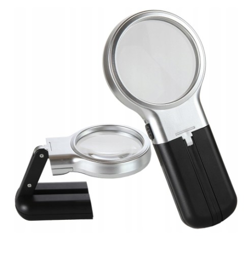 PROFESJONALNA SKŁADANA LUPA JUBILERSKA RĘCZNA/BIURKOWA Z DIODAMI