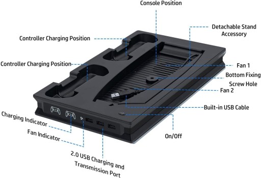Zasilany przez konsolę do gier za pomocą kabla USB (w zestawie). Nie jest wymagane żadne dodatkowe źródło zasilania. W zestawie śruba montażowa do zabezpieczenia konsoli do gier. Kompaktowy i łatwy w konfiguracji. Utrzymuje Twój dom w czystości i porządku
